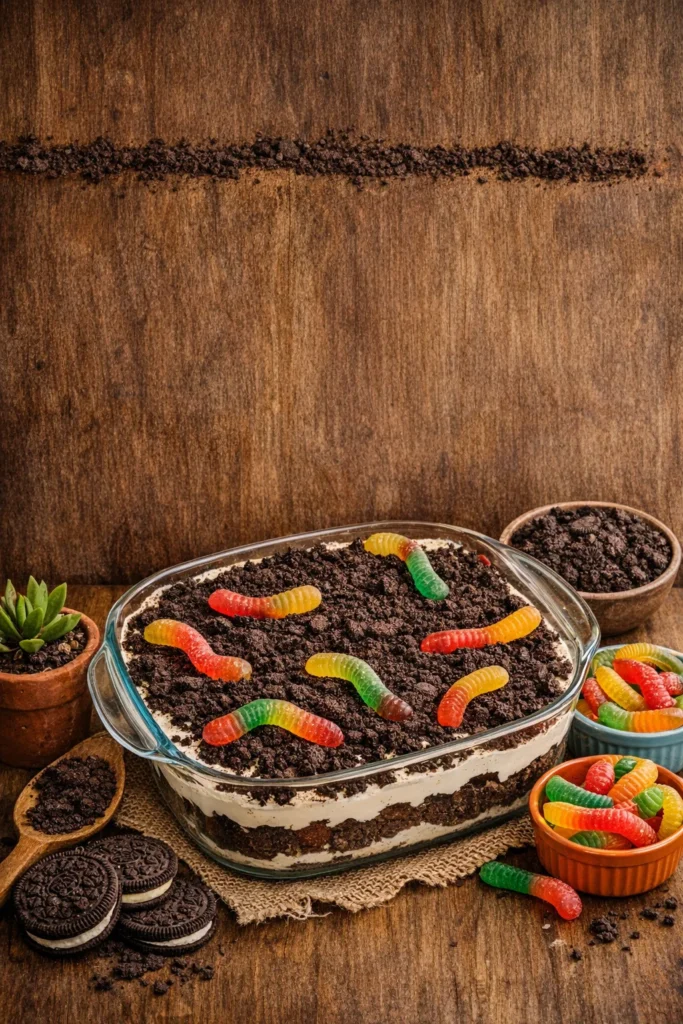 - 9×13 inch baking dish, trifle bowl, or a terracotta pot (for the full “dirt” effect)